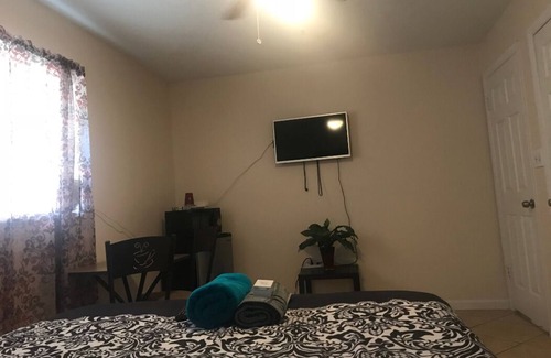 Modern private guest suite with its own entrance, its own bathroom, all important appliances (TV, Cooler, Microwave), with private entrance through the garage and only connected to the main house by a door that's always locked. High speed Wi-Fi, a Roku device with YouTube, Netflix, Hulu, HBO etc.. and a ton of channels through the Spectrum App. Less than 10 minutes away from UCF, 20 minutes from the airport, less than 30 minutes away from Universal, Disney World , and the Convention Center.