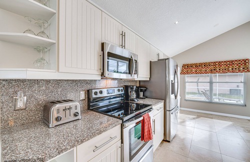 Head to the heart of Kissimmee for sun-soaked days by the pool, Disney adventures, and more with this spacious vacation rental as your home base! The 4-bedroom, 3-bath home has everything you need for a laid-back getaway, including a private pool, a furnished lanai, and easy access to family-friendly attractions. Treat the kiddos to a day of Disney magic — the parks are only 8 miles away — then relax with a barbecue on the back patio and a family favorite on the Smart TV.