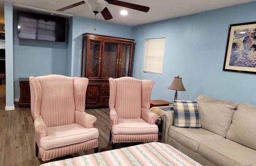 This large home hosts FIVE bedrooms with 3 bathrooms for your enjoyment. Fully furnished, modern kitchen with accessories, abundant parking and plenty of floor space. Two-day minimum stay but long-term stays are welcome. Hosting private events permitted with prior approval. Sorry no pets or indoor smoking.