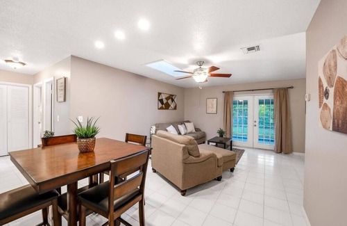 Your family will be close to everything when you stay at this centrally-located home away from home. Only a short drive from Orlando theme parks like Disney and Universal; and a short drive to the beautiful beaches. You can experience a new adventure everyday. Featuring a large private fenced-in yard and screened patio you will be able to enjoy the sunny Florida weather during your stay.