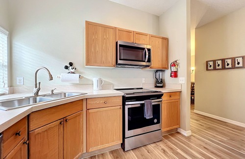 There are 4 bedrooms in the property, consisting of one Master, with a King size bed and full en-suite facilities, a Queen bedroom, and two twin rooms, each themed for children. One twin room is themed Classic Mickey Mouse/Minnie Mouse which will inspire any child on a Disney Dream vacation. The other twin room is themed for the Harry Potter movies which will appeal to those who enjoy Universal Studios. All the bedrooms enjoy cable TV, with wall mounted flat screens provided.