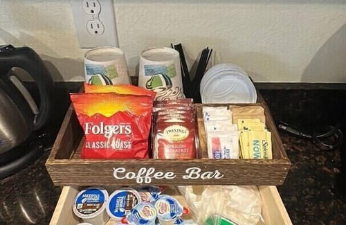 • Modern Amenities: Fully equipped kitchen, coffee and tea station, and more